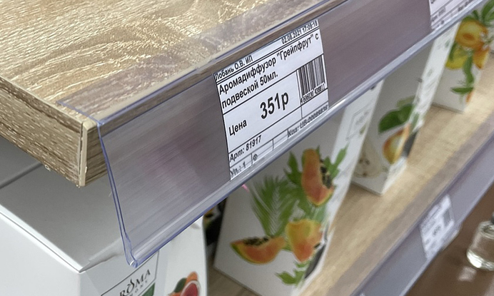 Применяются профили PRL35 в любых сегментах: продуктовые и хозяйственные магазины, аптеки, зоомагазины, косметика и парфюмерия… Даже в магазинах одежды и обуви они находят свое место, к примеру, в отделах «Последняя пара» или «Распродажа прежней коллекции». Варианты применения клеящихся ценникодержателей