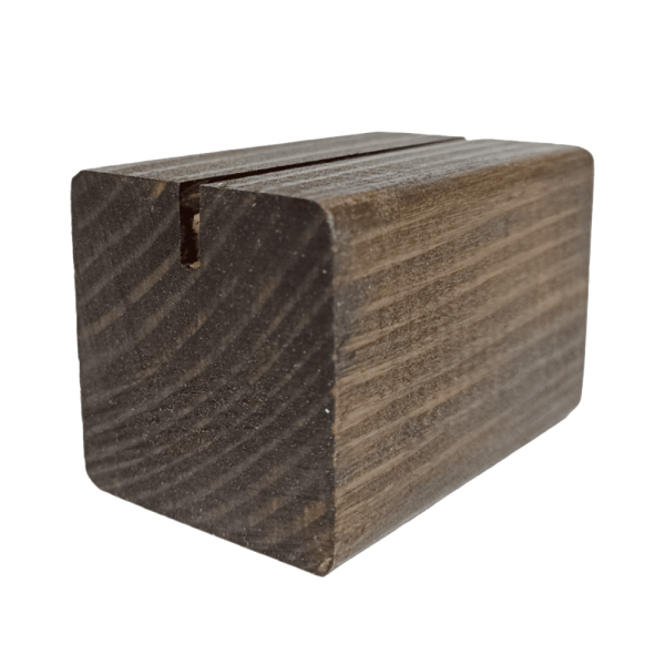 Держатель универсальный темный деревянный размером 60х40 мм. Прямая прорезь шириной 3 мм. Для размещения ценников, визиток или рекламы.