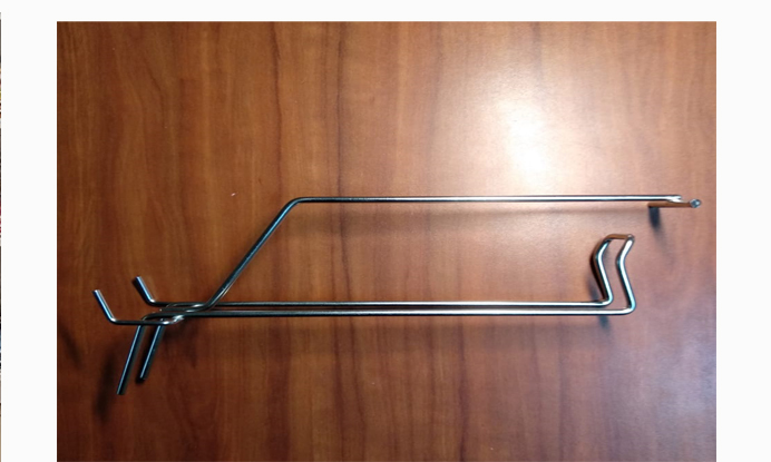 Двойной крючок имеет резкий дугообразный изгиб вверх на конце (это хорошо видно на фото). Чтобы снять с него товар, требуется потратить некоторое время и приложить небольшие, но усилия. Для потенциального вора и то, и другое – повод отказаться от нехороших мыслей, чтобы не привлечь к своим действиям внимания. Незаметно что-то стащить практически нереально.