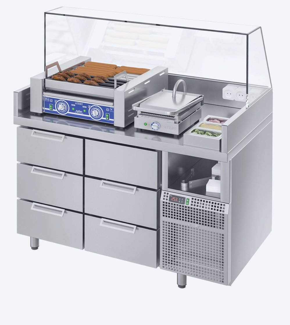 Все эти позиции укомплектованы комби-грилем для котлет и сосисок, контактным грилем, а 900.700-02 плюс оснащена подставкой.