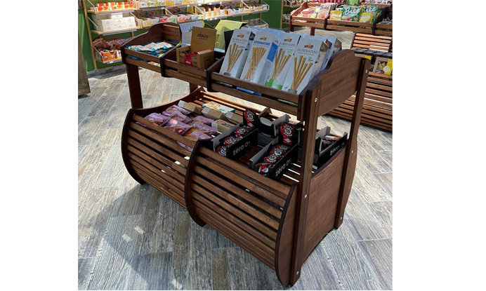Островной стеллаж из дерева «Бочонок» однозначно свидетельствует об уровне вашего магазина и качестве ассортимента.