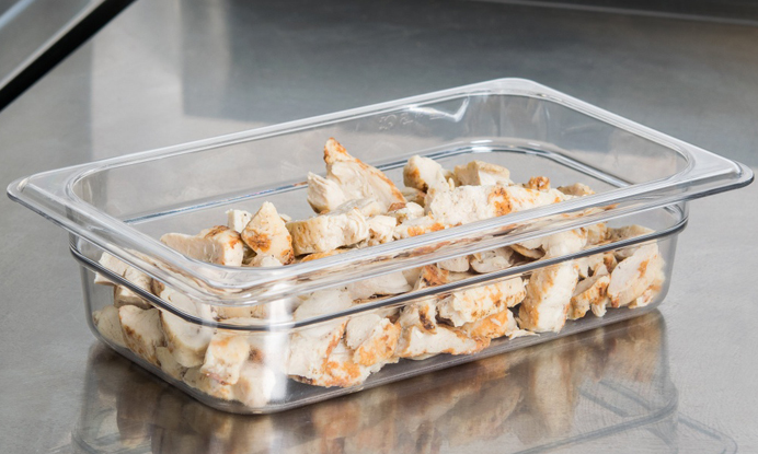 Гастроемкости выполнены из двух типов материала, полипропилен и поликарбонат. И тот, и другой соответствуют нормам санитарной безопасности. Кроме того, это очень прочные материалы, которые легко выдерживают случайные удары, падения и пр. Сколы на них появляются редко и только в результате очень большой нагрузки. Кстати, как и царапины.