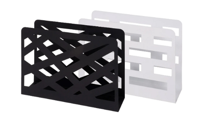 Выпускается в двух цветовых вариантах, черном и белом. Металл лакируется, придавая газетнице дополнительный шик.