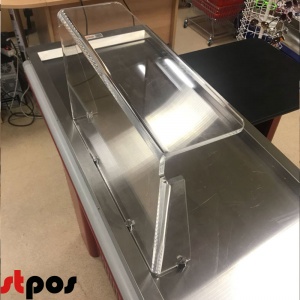 В паре с этим торговым оборудованием стоит упомянуть и про защиту для кассового аппарата. Это Г-образная надстройка из прочного оргсекла, защищающая от все тех же угроз самое сердце кассового бокса.