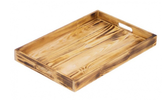 Наконец, обратите внимание на любопытные по самой идее подносы: с обжигом. Они действительно обжигаются огнем, который оставляет на поверхности материала неповторимые узоры. Такие подносы выглядят особенно оригинально.