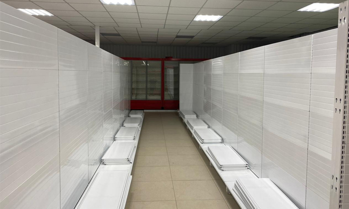 Вот вам несколько фотографий «закулисной» кухни работы с торговым оборудованием. На них готовящийся к запуску магазин смешанного ассортимента в одной из областей, граничащих с ЮФО. Мы поставили нашим клиентам все виды торгового оборудования, за исключением холодильного: стеллажи, кассовые боксы и т.д. В перечне цветные стеллажи, хлебные и так далее. Практически все производства завода стеллажных систем «Нордика» (STPOS это представительство «Нордики» в Южном федеральном округе)
