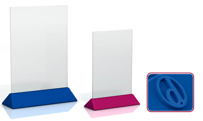 Во-первых, есть варианты цветных оснований информера. Подбор цвета позволяет, во-первых, с большей гармоничностью вписать этот элемент среды магазина/кафе/офиса в общий интерьер, во-вторых, при необходимости соблюсти корпоративную цветовую гамму компании. Кроме этого, технически реально нанесение на подставки любой надписи или логотипа. Таким образом, рекламная функция менюхолдера усиливается, да и смотрится он привлекательнее, притягивает большее внимание.