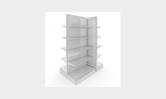 Рассчитан такой стеллаж на товары среднего веса. Помимо эстетической функции – закрыть торцевые части – помогает с толком использовать пространство в зале, не упуская ценных «квадратов».