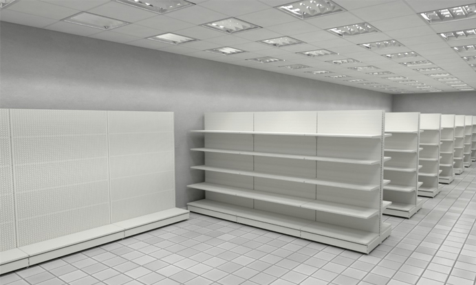 Мы предлагаем в качестве основного наполнения торгового зала грузоподъемные металлические стеллажи для горизонтальной выкладки.