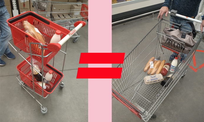 С момента изобретения тележки для покупок в конце 30-х годов ХХ века ее объем увеличился втрое (!). Об этом пишет американский маркетолог, исследователь покупательского поведения Стивен Лэндсбург. Изучив историю торгового оборудования, он сделал вывод, что только с 1975 года литраж телег в магазинах вырос вдвое.