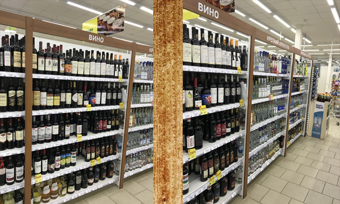 Отличным решением может стать покраска передних стоек стеллажа при их наличии. Стойки – они на то и фронтальные, что на виду и сразу же бросаются в глаза. Они оттеняют упаковки с товаром, цвет можно подобрать так, чтобы он гармонировал с продукцией или, если так можно выразиться, соответствовал его духу. Простой пример – стойки «под дерево» или просто благородно коричневые в отделах с алкоголем. Цвета соответствуют естественному цвету более «элитарной» продукции: коньяки, виски, бренди. Впрочем, с пивом они тоже сочетаются, делая этот сравнительно недорогой напиток более солидным в восприятии покупателя.