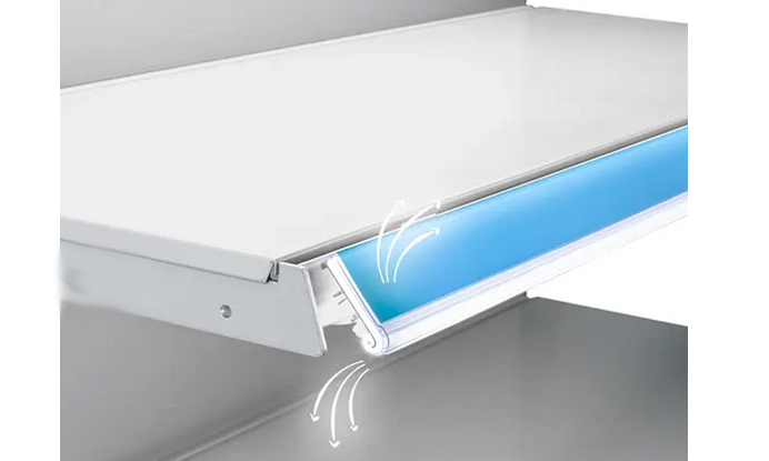 Подсвечивается и сам ценник, и товар, при этом толщина конструкции минимальна, производитель определяет модель как «супертонкую».
