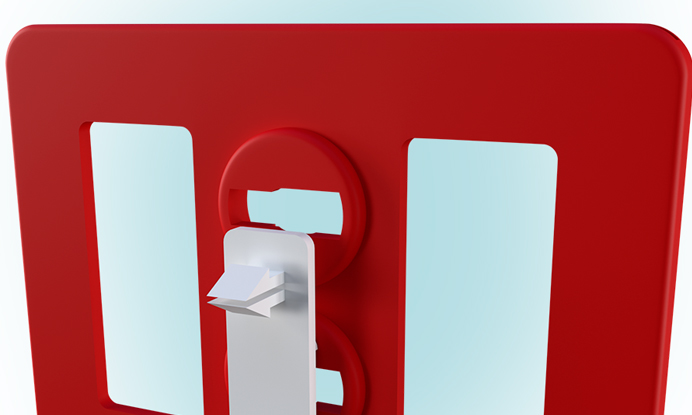 Рамки техно матов крепятся на перфорацию при помощи держателя TECHNO PERFO CLIP. Это усиленная клипса, разработанная для перфорации с шагом в 25 мм. Крепление получается прочным и органичным, рамка плотно прилегает к поверхности.
