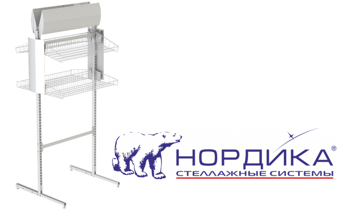 На экспозитор устанавливаются корзины, то есть выкладка может быть довольно обильной.