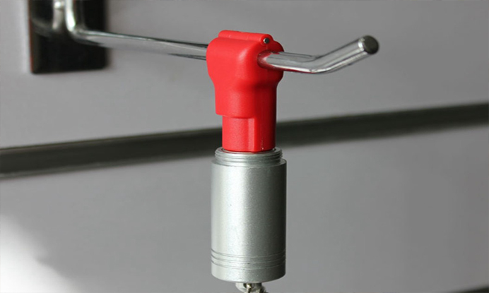Небольшая и недорогая деталь позволяет в разы сократить ущерб от воровства. Работает везде – в продуктовых магазинах (чипсы, сухарики, конфетки и пр.), в любых непродуктовых, предлагающих фасованную мелочь (рыболовные, рукодельные, бижутерия, аксессуары). Простой пластиковый фиксатор с замочком не позволяет без участия продавца снять с крючка товар. В продуктовых, впрочем, используется реже, а вот в магазинах бижутерии, хобби, аксессуаров, а также на рыночных точках он очень актуален. Шутка ли, цена простенькой рыболовной лески (а она как раз продается в пакете с прорезью для крючка) стартует от 200 рублей за катушку! А уж в прикассовой зоне с обилием батареек, заколок, средств гигиены в блистерах он действительно незаменим.