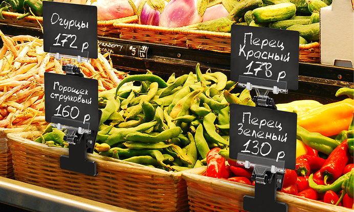 Применяется с информационными носителями также формата А6, прежде всего, меловыми табличками. Но точно так же может удерживать картон, ламинированную вставку, тонкий пластик. Тоже размещается на краю тары.