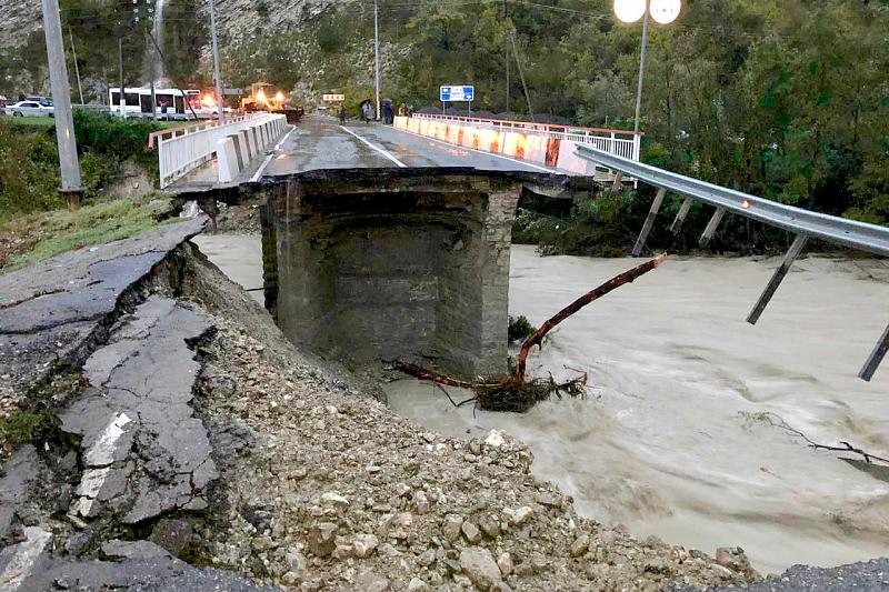 24 октября оказались подтопленными десятки населенных пунктов в Туапсинском районе. Мост через реку Макопсе разрушен, из-за селей и размыва путей не ходят даже поезда. Таким образом, движение на трассе Краснодар-Сочи остановлено. Связь между Туапсе и Лазаревским районом полностью прервана.