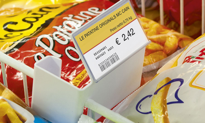 Верхняя часть, куда вставляется сам ценник, расположена под углом для лучшей обзорности. Очень удобный для покупателя вариант. Как правило, в холодильниках хранится множество товарных позиций, искать цену на общих ценниках не всегда удобно. Эта модель позволяет информировать покупателя о цене и свойствах товара в каждой из корзинок, тем самым увеличивая комфорт покупки и заодно средний чек магазина.