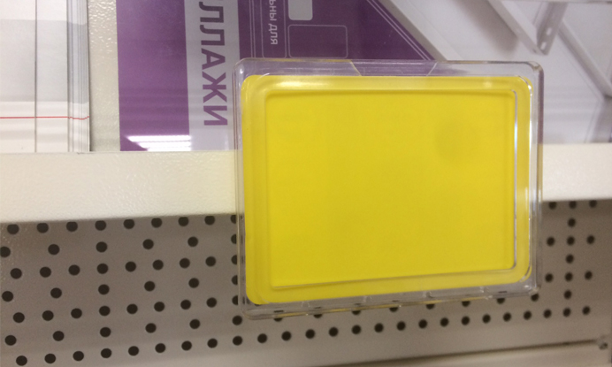 Сам по себе внешний вид этих маленьких конструкций из ударопрочного пластика очень аккуратный и, если так можно выразиться, «мультяшный», «милый». Они ласкают взор и однозначно привлекают внимание к товару, не перетягивая при этом его на себя. Отдельно надо отметить цветовую гамму рамок А8, они бывают прозрачные, черные, белые, красные и синие. А7 – прозрачные, белые и красные. А если использовать с ними еще и меловые ценники, то в сочетании с цветами маркеров можно создать яркие объекты с любыми надписями.