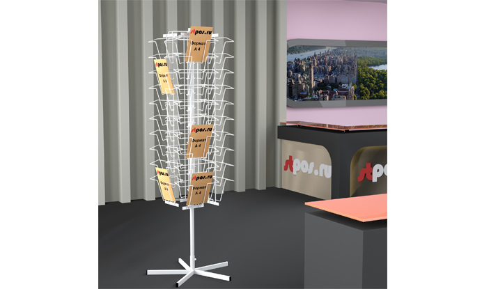 Вращающиеся многогранные – они вообще нужны, когда печатной продукции много, ее надо рассматривать и выбирать. Когда ассортимент небольшой (например, ограниченное число открыток в магазине цветов, пара рекламных буклетов об акциях в магазине), «вертушка» просто не нужна.