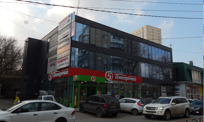 Первый этаж занят «Пятерочкой», которая, судя по всему, является ключевым арендатором.