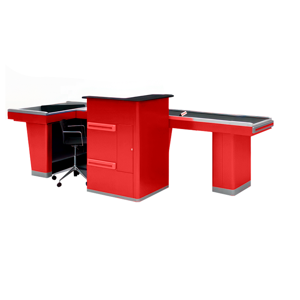 Кассовый бокс Stream-CC-290-Т150 MAX (транспортер150см,шлиф.нерж.,без вырез),RAL3000,Красный,Левый
