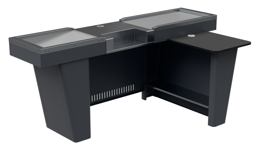 Боксы данной модели представляют модульную конструкцию, которая имеет тумбу для кассира, а также в ней предусмотрена возможность делать дополнительные вырезы под электронное оборудование. В боксе нет транспортера, предусмотрен узкий накопитель.