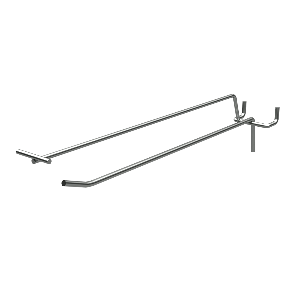 Одинарный крючок предназначен для установки в перфорированную стенку с шагом 45 мм. Изделие позволяет разместить для демонстрации небольшие товары — предметы одежды, защитные стёкла для мобильных устройств, батарейки и другие товары, имеющие отверстия для подвешивания
