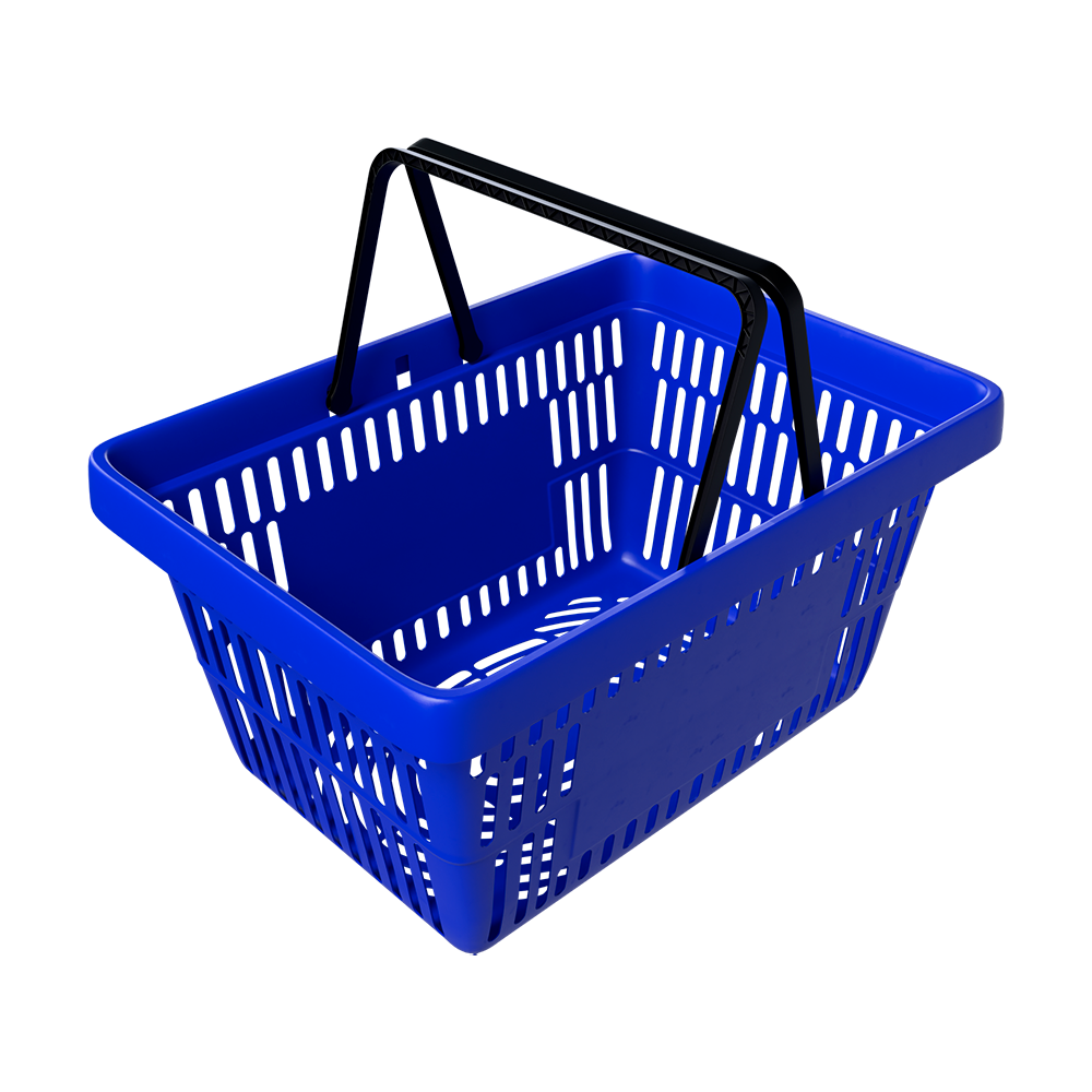 Двадцатилитровая покупательская корзинка – самая распространенная модель в разных типах магазинов. Они достаточно компактны, удобно штабелируются в накопителях, легкие. С ними легко управляться покупателям. Имеют две ручки.