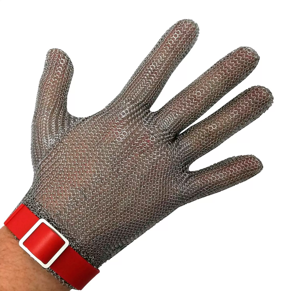 Перчатка кольчужная 5-ти палая, размер M, красный ремешок, материал AISI 316L