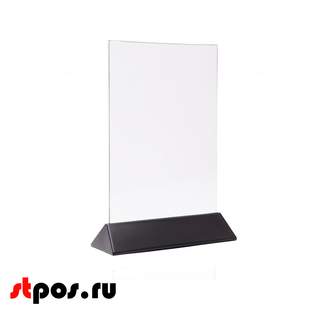 Тейбл-тент пластиковый, вертикальный А4 трапециевидное черное основание 238х341х87мм.