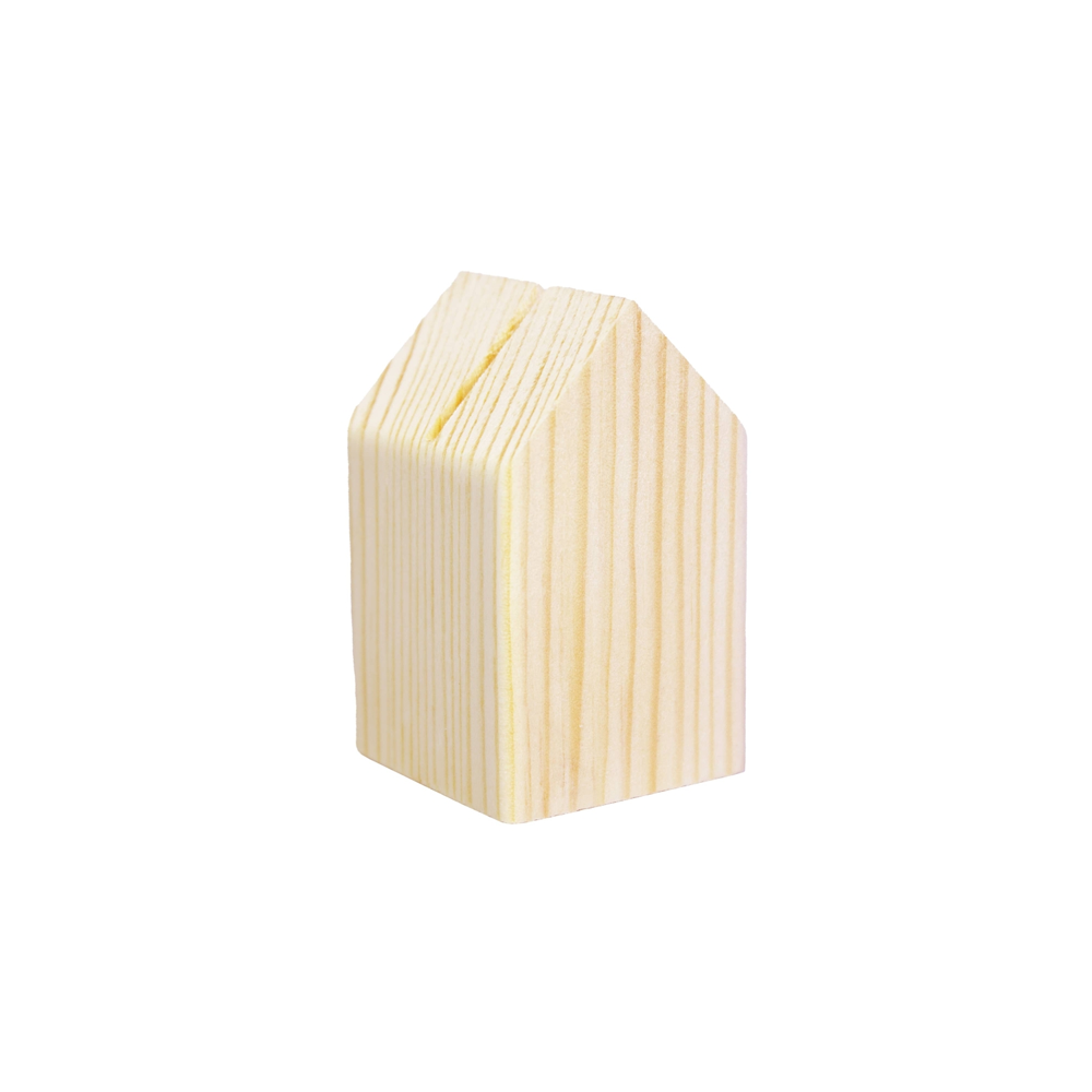 Держатель деревянный в виде домика размером 40х65 мм с прорезью шириной 2 мм. Универсальный держатель для ценника, рекламы и qr-кодов. Прорези достаточно для бумажного носителя или пвх толщиной 2 мм