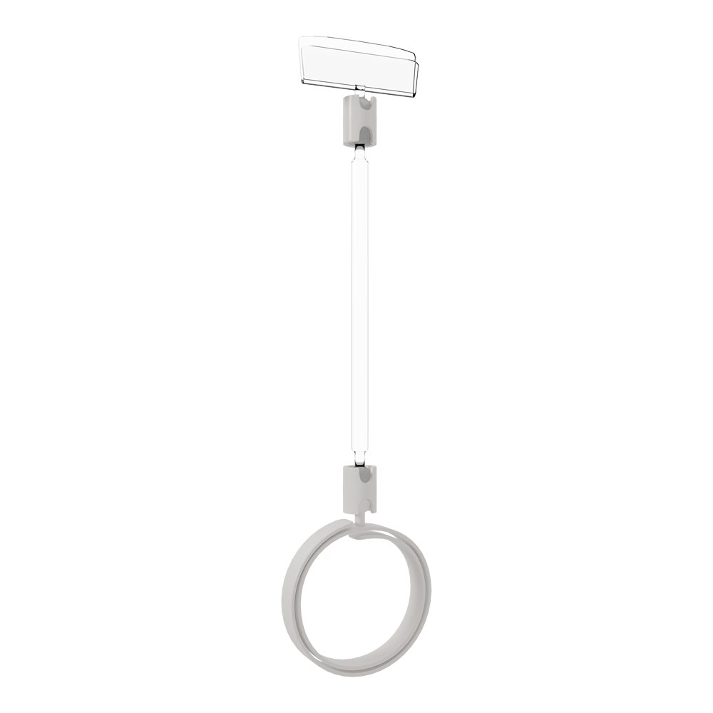 Держатель ROLL-CLIP характеризуется своей гибкостью в прямом и переносном смысле. Разработанный для крепления на товары цилиндрической формы, он оснащен спиральным захватом, растягивающимся от 30 до 120 мм в диаметре. То есть один держатель может применяться для самых разных товаров: от собственно колбасы разных сортов до сравнительно толстых рулонов, образцов труб и так далее.