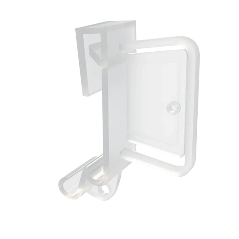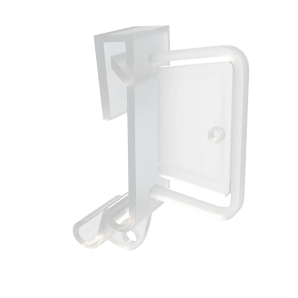 Держатель предназначен для крепления на полках стеллажей стопперов, информирующих об акции или товаре. Фиксируется на полочных ценникодержателях высотой 26, 30 и 39 мм и на краях некоторых видов полок. Стоппер размещается перпендикулярно к полке. В качестве вставок используются стопперы из ламинированного картона или тонкого пластика толщиной до 0,8 мм. Стоппер надежно фиксируется в клипсе благодаря штырьку, который заходит в отверстие на стоппере.