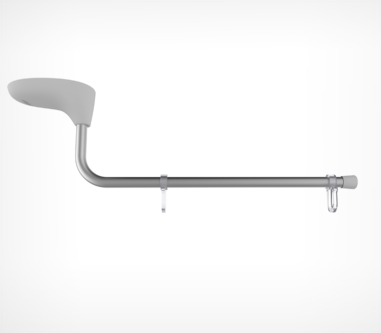 Угол наклона трубки не регулируется. На трубке 2 подвижных пластиковых крючка.