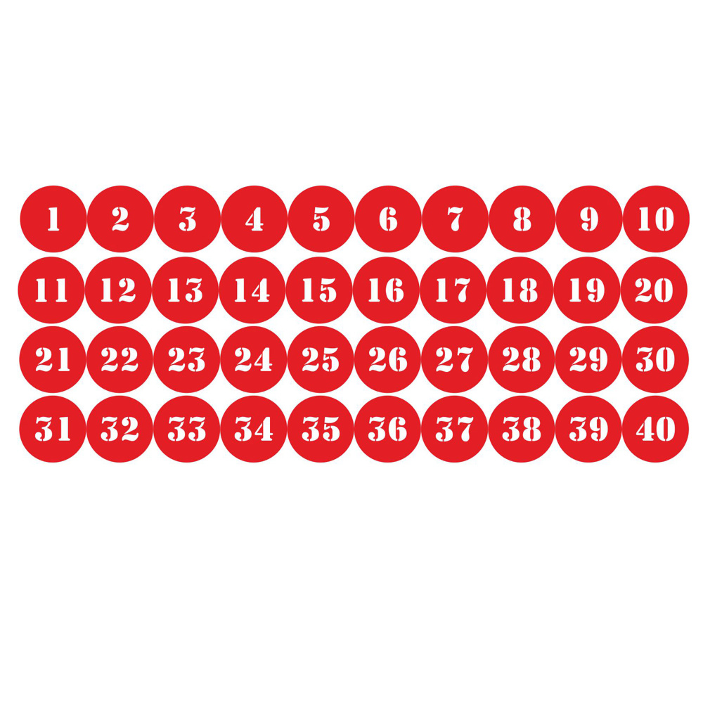 Наклейка для нумерации сумочных шкафов (трафарет) номера 1-40, красная
