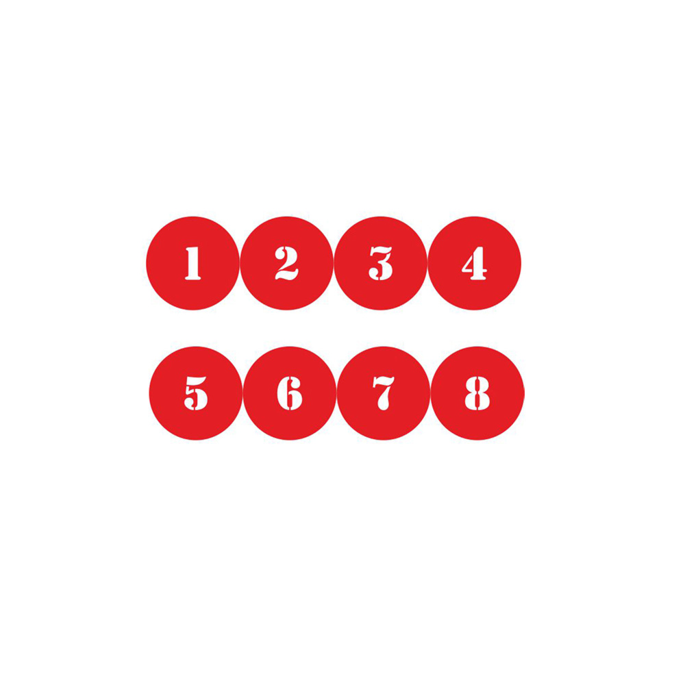 Наклейка для нумерации сумочных шкафов (трафарет) номера 1-8, красная