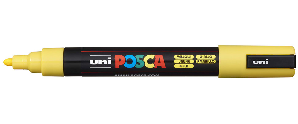 Маркер на водной основе POSCA PC-5M, жёлтый (YELLOW - 2), 1.8 - 2.5 мм