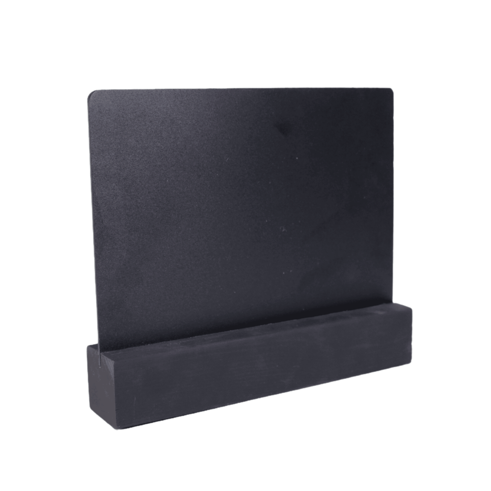 Тейбл-тент горизонтальный, А5, 210х190х40мм, меловой, ПВХ, с деревянным основанием 40х40мм, черным