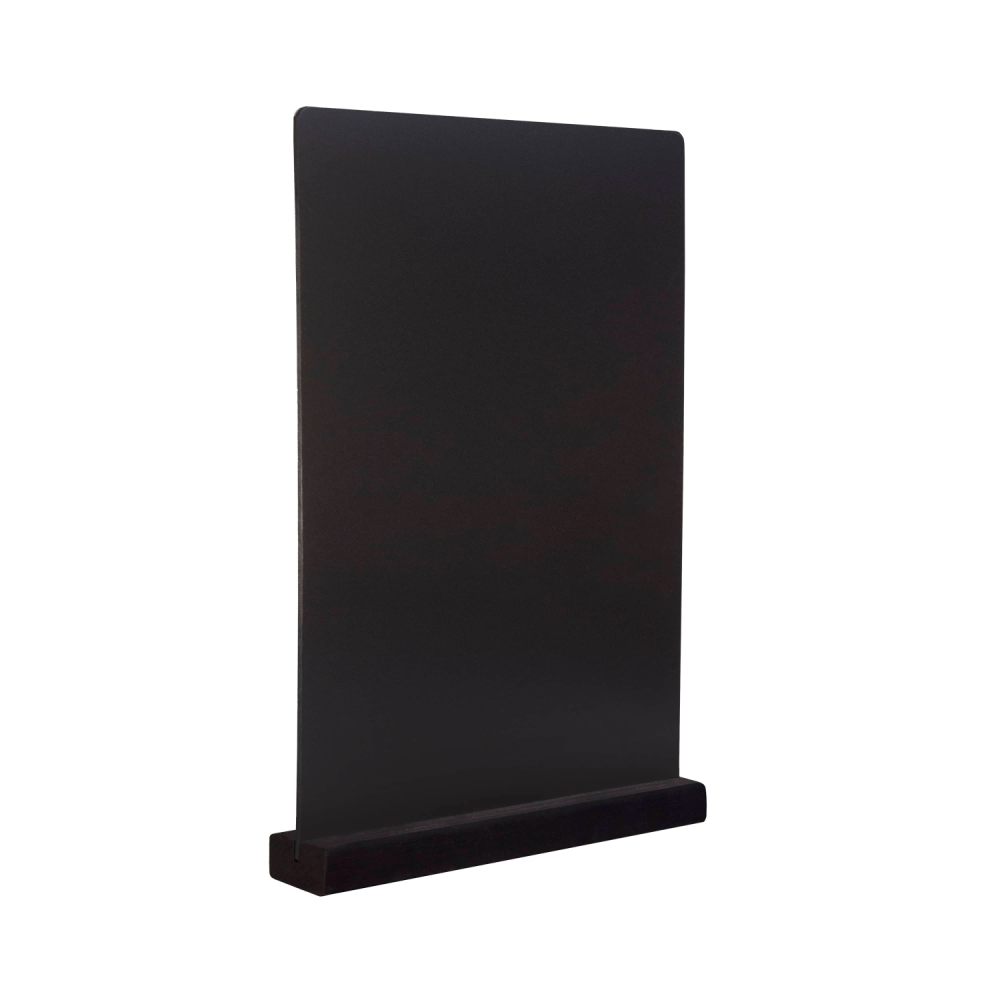Тейбл-тент вертикальный, А4, 210х340х40мм, меловой, ПВХ, с деревянным основанием 40х19мм, черный