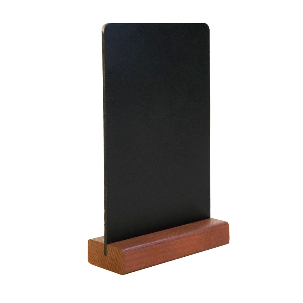 Тейбл-тент вертикальный, А6, 105х190х40мм, меловой, ПВХ, с деревянным основанием 40х19мм, темным