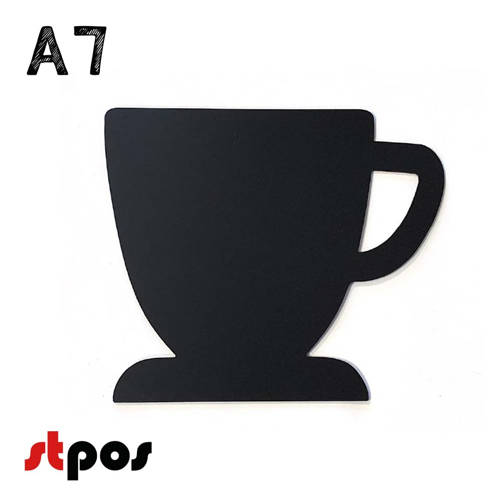 Меловой ценник-фигура "ЧАШКА" для нанесения меловым маркером, 90х75мм (А7), толщина ПВХ 3мм, черная
