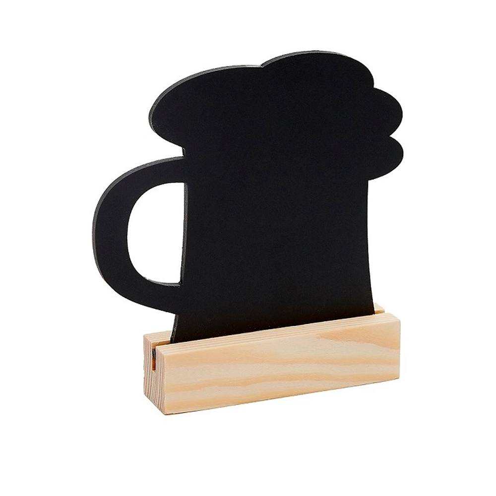 Ценник меловой фигурный Кружка двусторонний размером 94х87х19 мм. Ценник предназначен для нанесения специальными маркерами. Надпись легко стереть влажным материалом. Основание из натуральной бессучковой рейки. Меловая табличка-ценник применим в заведениях общепита, пивных барах и ресторанах