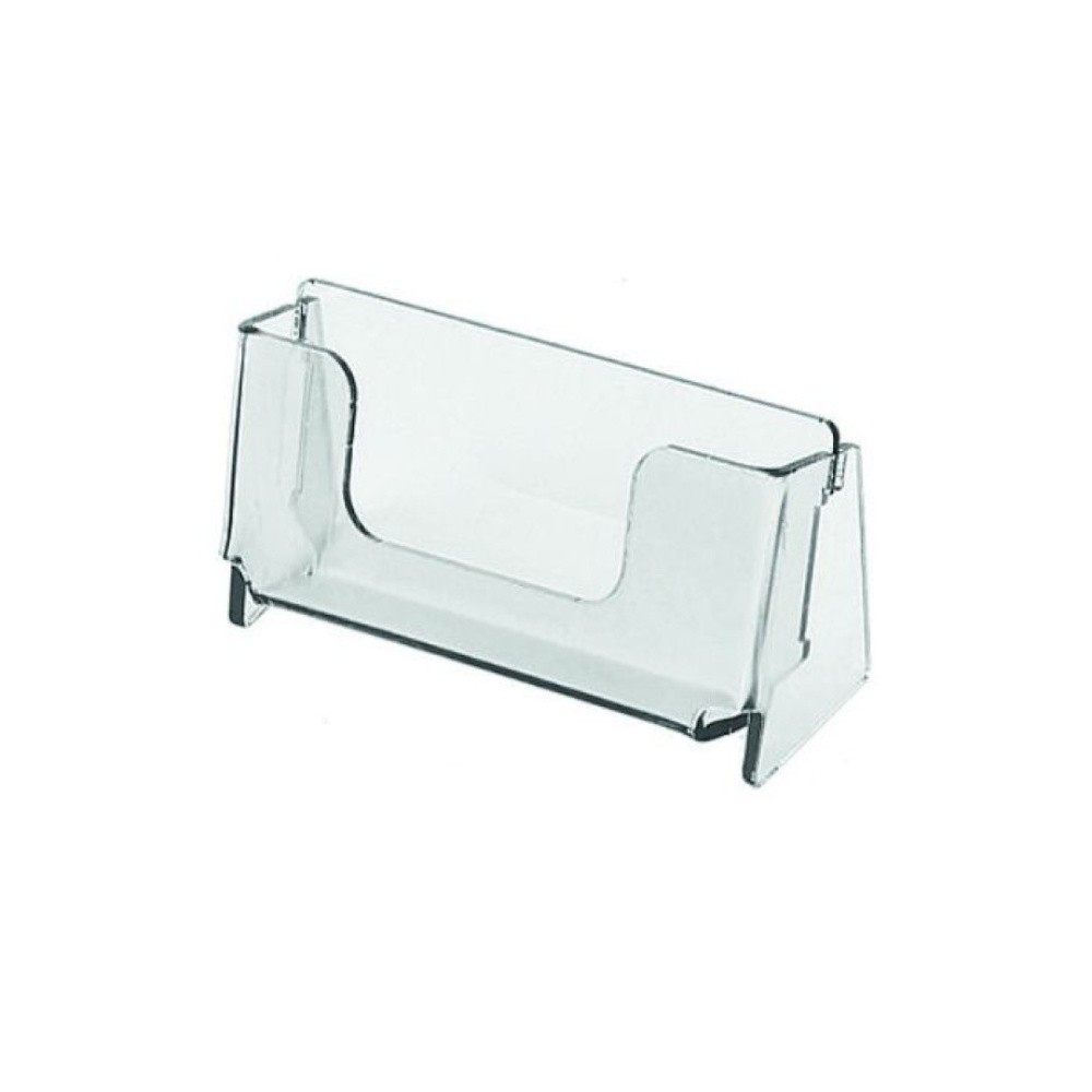 Подставка для визиток настольная из прозрачного полистирола. Подставки для визиток всегда есть в наличии. Помещается максимальное количество визиток 50 шт. Подставки для визиток у нас можно купить оптом дешевле.