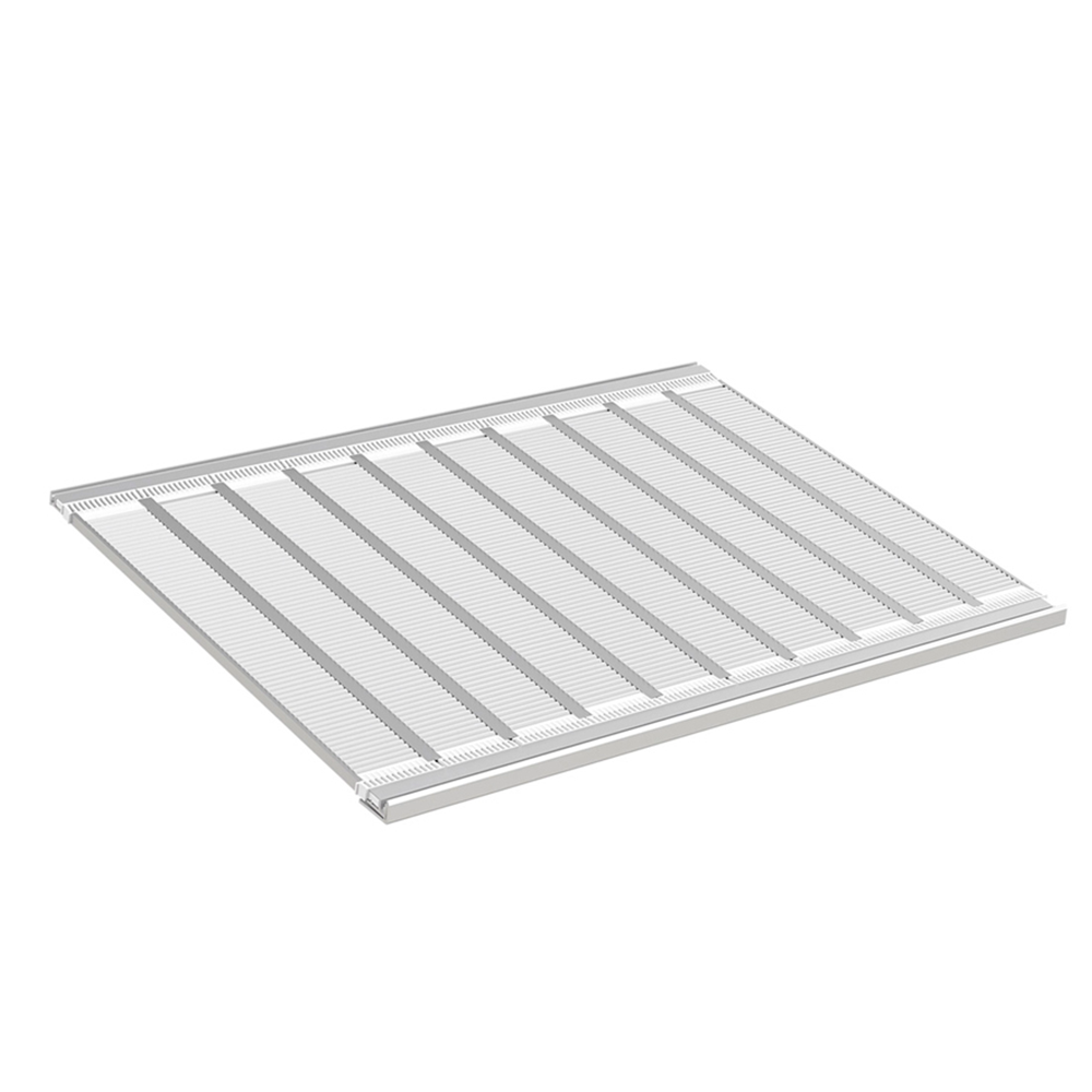 Основная часть полки - роллерное полотно, по которому продукты перемещаются к краю полки. Легко устанавливается на полку стеллажа и проста в обслуживании.