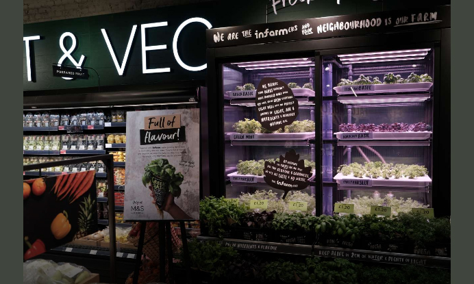 Первая такая мини-ферма появилась в " M & S:Simply Food» в сентябре этого года. Это стало огромным шагом в конкурентной борьбе за самые свежие продукты на прилавках.