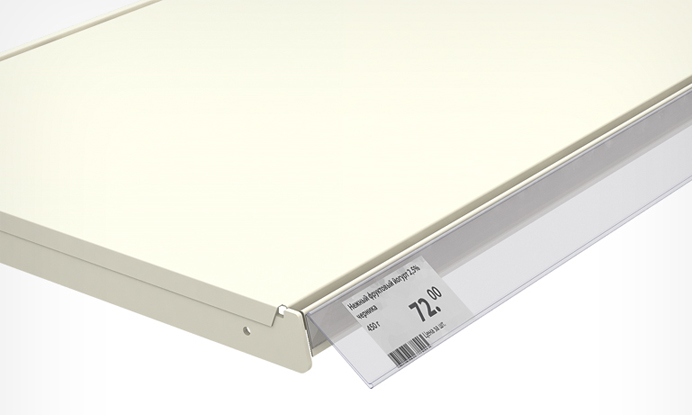 Для таких случаев существуют специальные модели держателей, которые позволяют разместить ценник под углом к торцу. Скажем, модель NO60 на вспененном скотче.