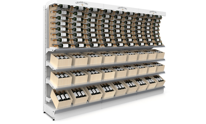 Остановимся в этот раз на стеллажах и пос-материалах для презентации в магазинах алкоголя, в частности, вина. Элементы дерева, как и всегда, придают продукции оттенок элитарности, добавляют стиля.