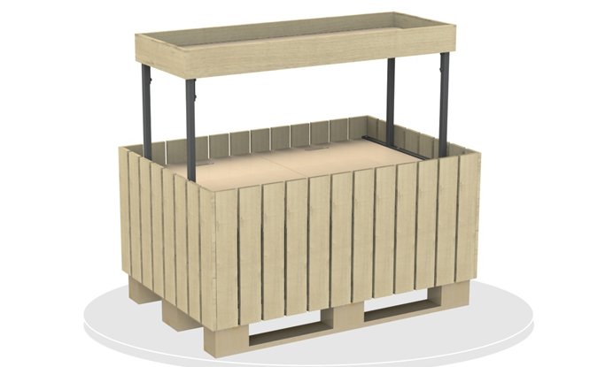 Внешний вид модели радует глаз: ящик оформляется рейками из ЛДСП. Дно ящика фанерное. Надстройка – замечательный вариант для дополнительной выкладки, в том числе для кросс-мерчендайзинга.
