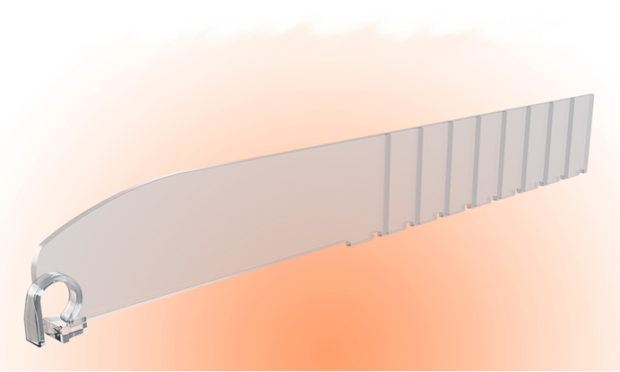 Разделители на полки стеллажа - оптимальный способ сделать выкладку упорядоченной и понятной покупателю. Обламывающиеся пластиковые разделители универсальны, их можно укоротить по размеру полки легким движением руки.